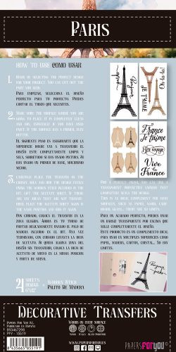 Añadir a mi listaBorrar de mi lista Añadir a mi lista PFY-15523 – Decorative Transfers 15x30cm 6″x 12″ 4 Hojas (Paris II) – pack 2 ud.