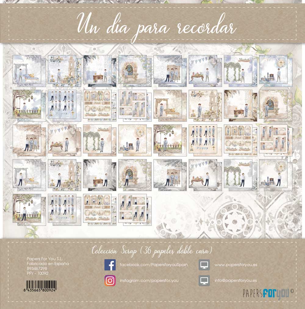 PFY-10092 – COLECCIÓN 36 PAPELES SCRAP DOBLE CARA 180gr 12″x12″ (UN DÍA PARA RECORDAR) TRES NIÑOS – pack 3 ud.