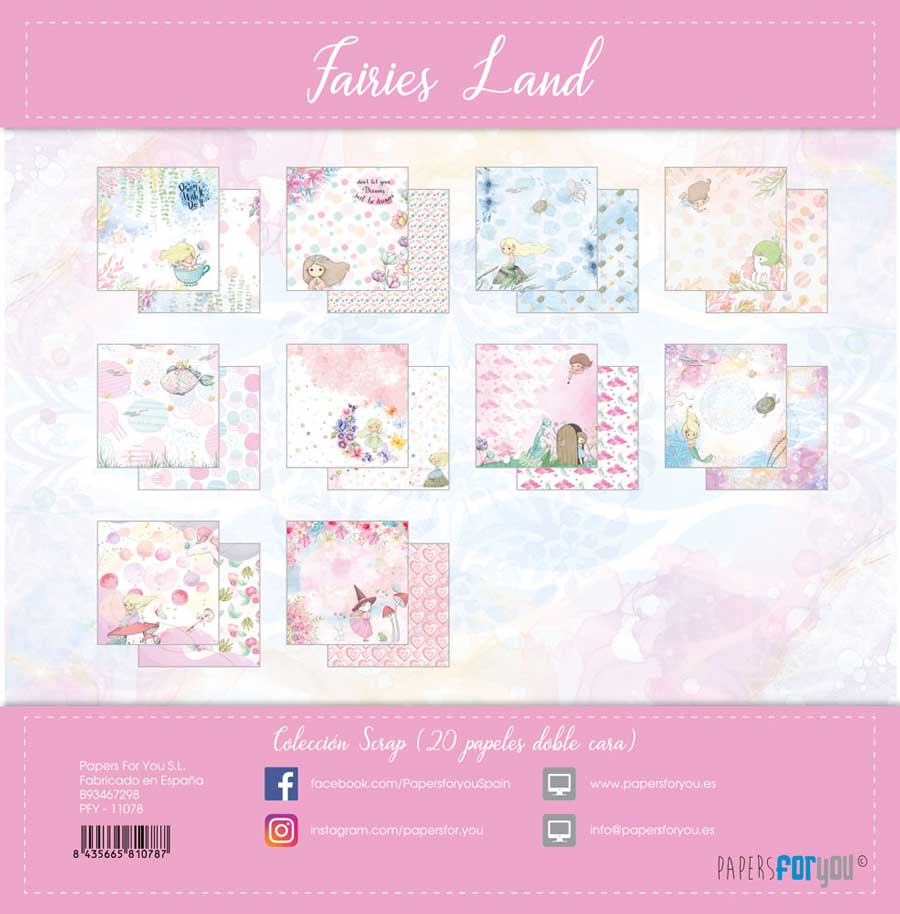 PFY-11078 – Colección 20 Papeles Scrap doble cara 180gr 8»x8» (Fairies Land) – pack 3 ud.