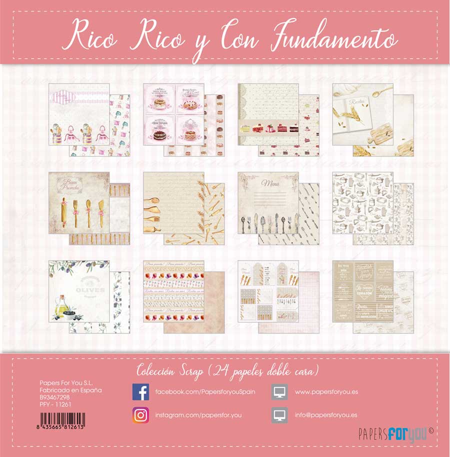 PFY-11261 – Colección 24 Papeles Scrap doble cara 180gr 8»x8» (Rico y con fundamento) – pack 3 ud.