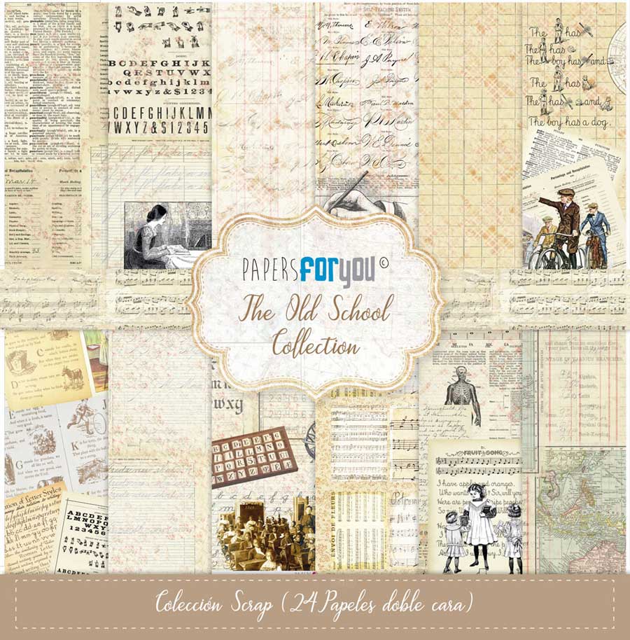 PFY-11266 – Colección 24 Papeles Scrap doble cara 180gr 8»x8» (The Old School) – pack 3 ud.