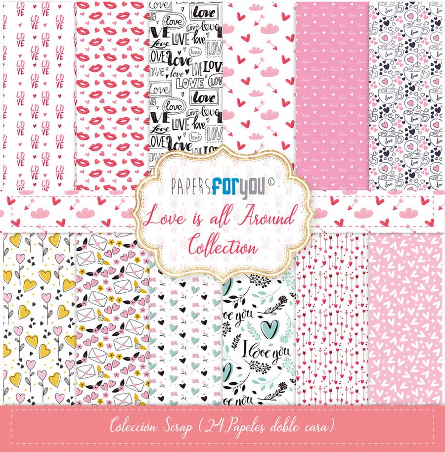 PFY-11282 – Colección 24 Papeles Scrap doble cara 180gr 8»x8» (Love is all Around) – pack 3 ud.