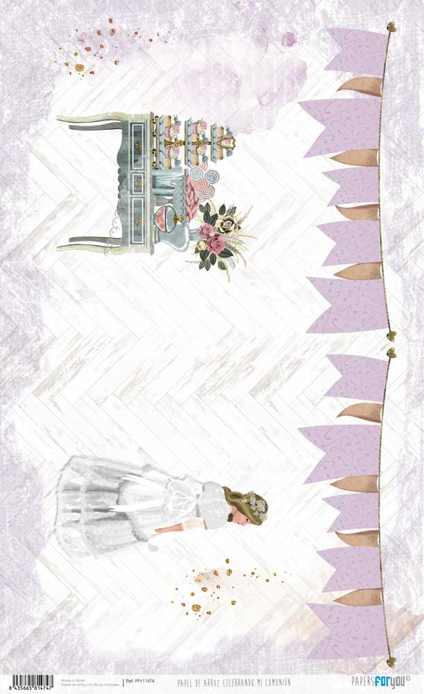 PFY-11474 – Papel Arroz 54×33 cm 25-30 gr. (Celebrando Mi Comunión Niña Rubia) – pack 6 ud.