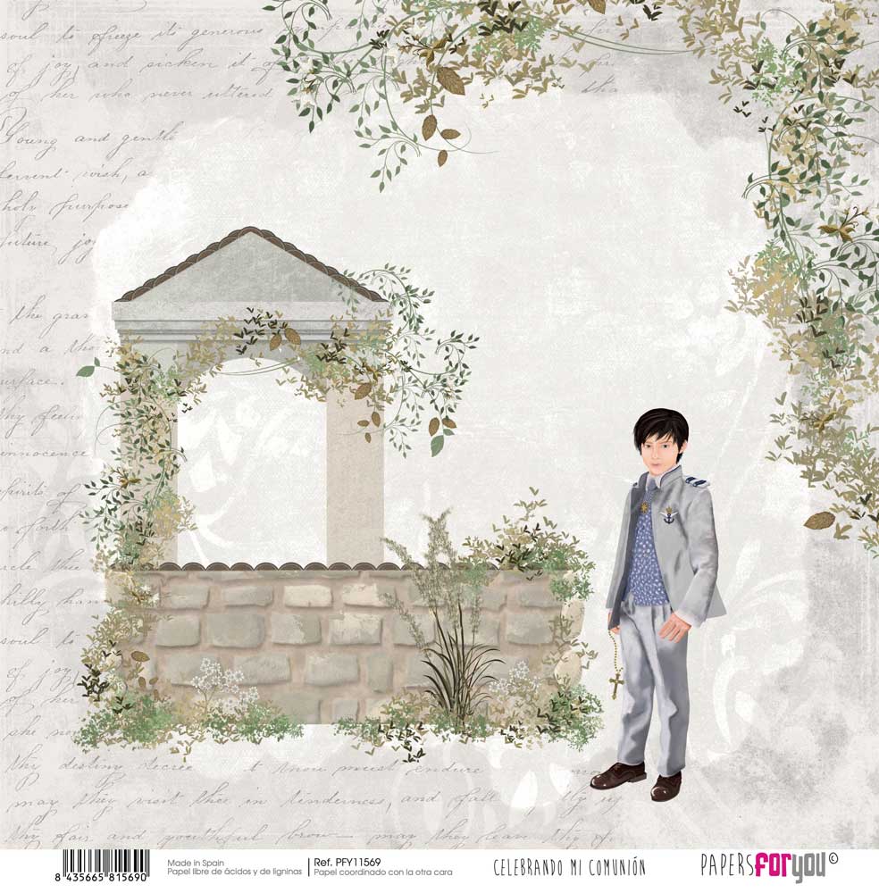 PFY-11569 – Papel Scrap doble cara 180gr 12″x12″ (Celebrando Mi Comunión Niño Moreno)- pack 12 ud.
