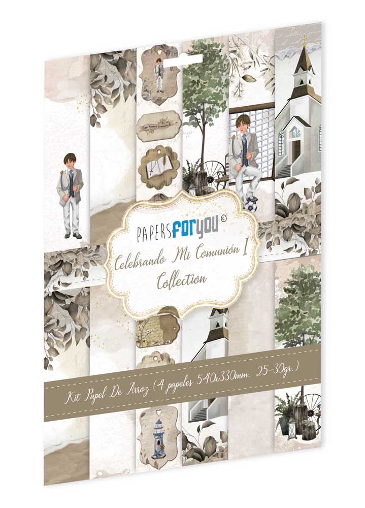 PFY-11664 – Colección de 4 Papeles Arroz 54×33 cm 25-30 gr. (Celebrando Mi Comunión Niño Rubio) – pack 4 ud.