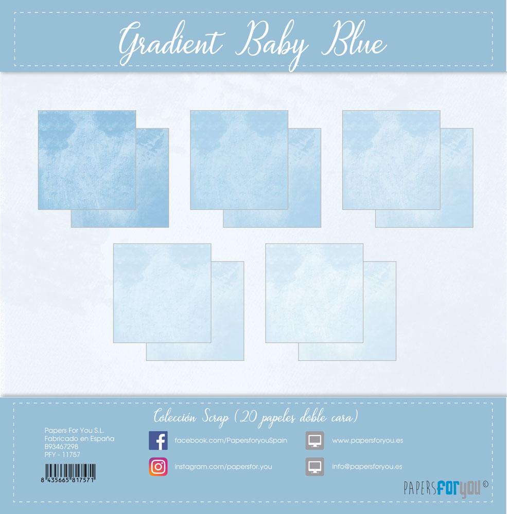 PFY-11757 – Colección 20 Papeles Scrap Mini doble cara 180gr 8″x 8″ (Gradient Baby Blue)- pack 3 ud.