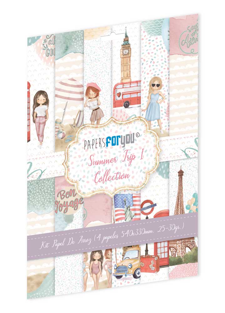 PFY-12139 – Colección de 4 Papeles Arroz 54×33 cm 25-30 gr. (Summer Trip I)- pack 4 ud.