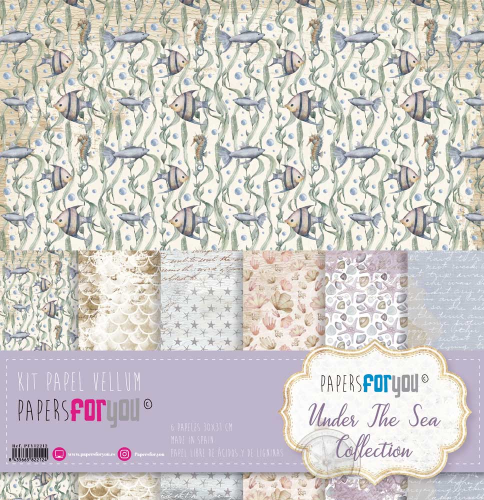 PFY-12212 – Kit Papel Scrap Vellum 6 Papeles 160gr (Under The Sea)- pack 3 ud.