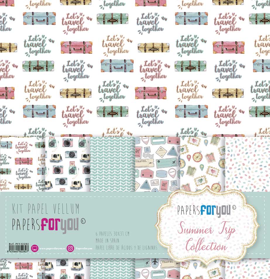 PFY-12282 – Kit Papel Scrap Vellum 6 Papeles 90gr (Summer Trip)- pack 3 ud.