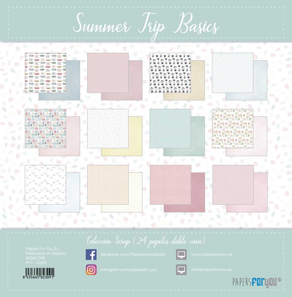 PFY-12309 – Colección 24 Papeles Scrap Mini doble cara 180gr 8″x 8″ (Summer Trip Basics)- pack 3 ud.