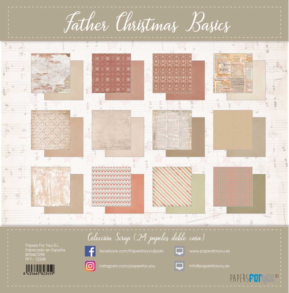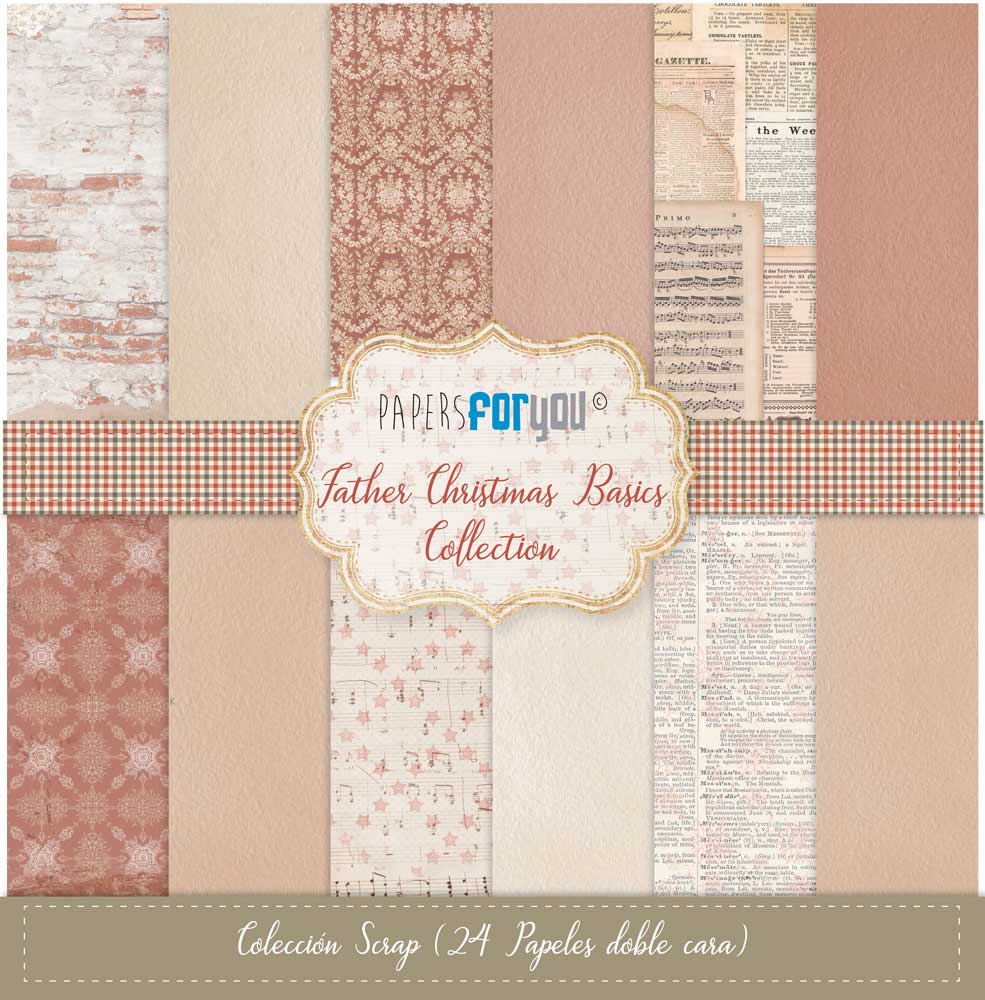 PFY-12345 – Colección 24 Papeles Scrap doble cara 180gr 8″x 8″ (Father Christmas Basics)- pack 3 ud.