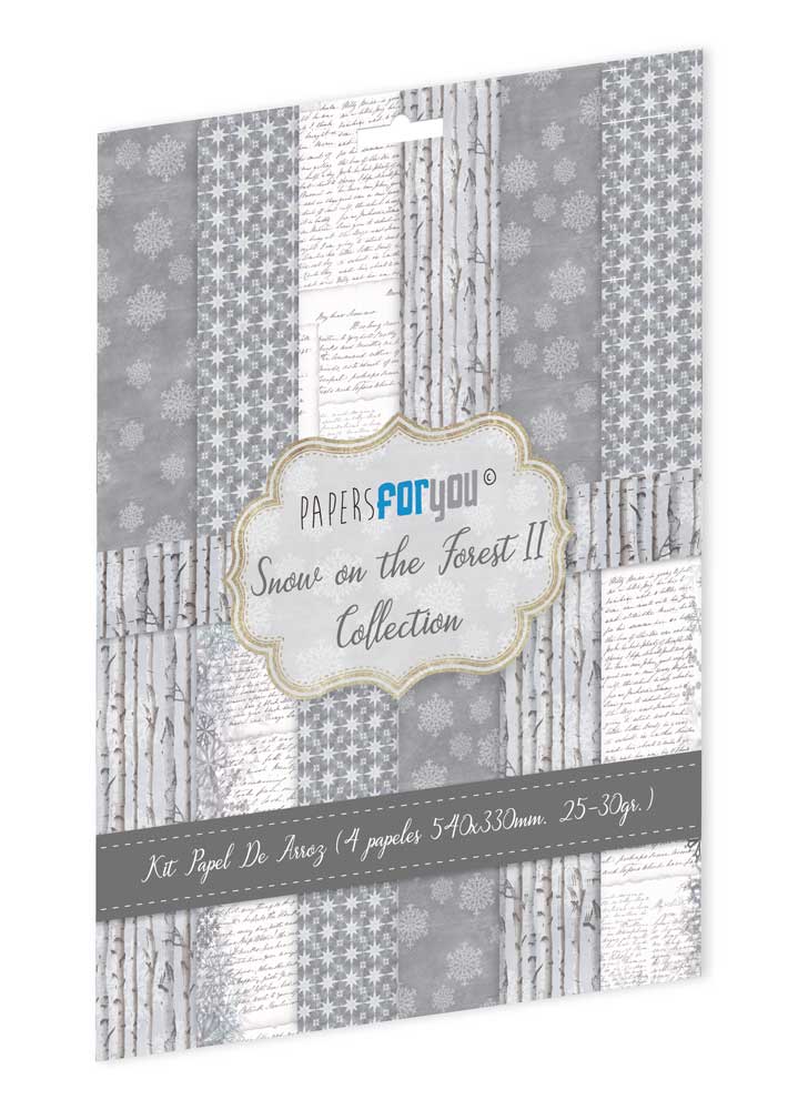 PFY-12417 – Colección de 4 Papeles Arroz 54×33 cm 25-30 gr. (Snow on the Forest II)- pack 4 ud.