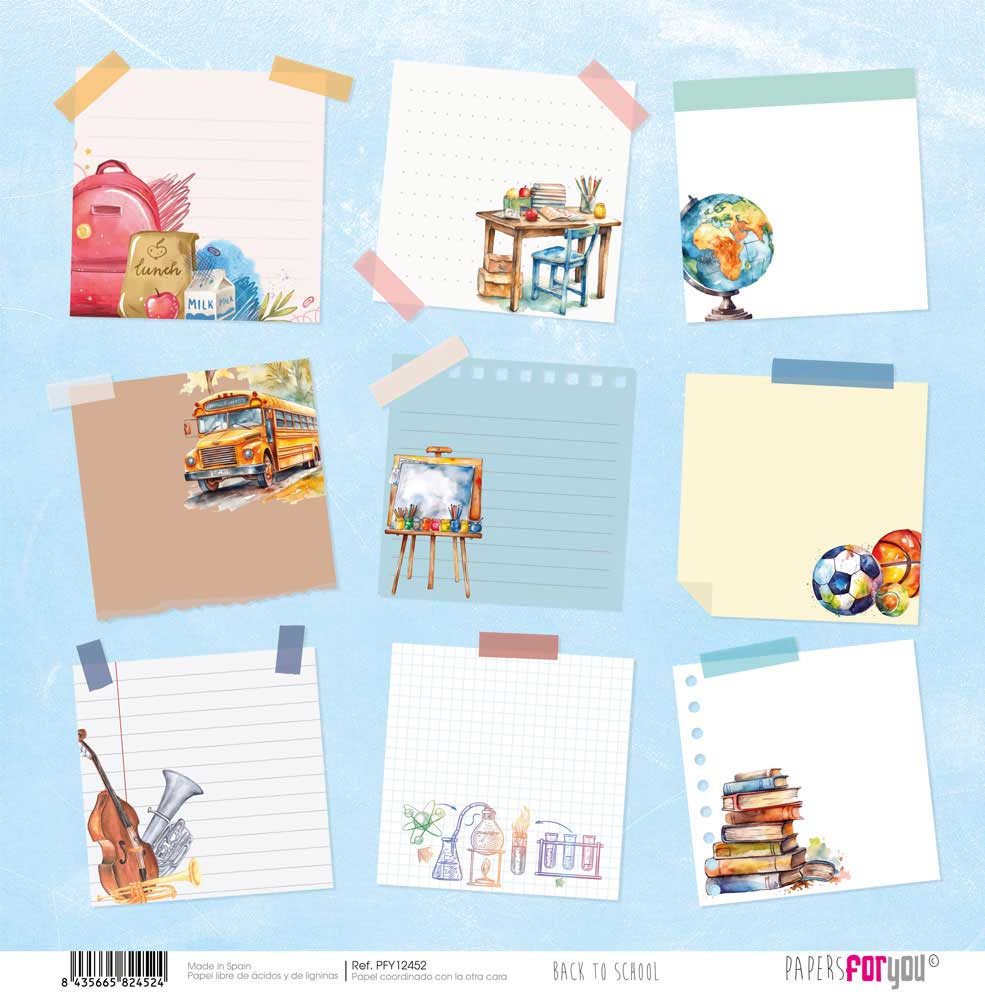 PFY-12452 – Papel Scrap doble cara 180gr 12″x12″ (Back to School)- pack 12 ud.