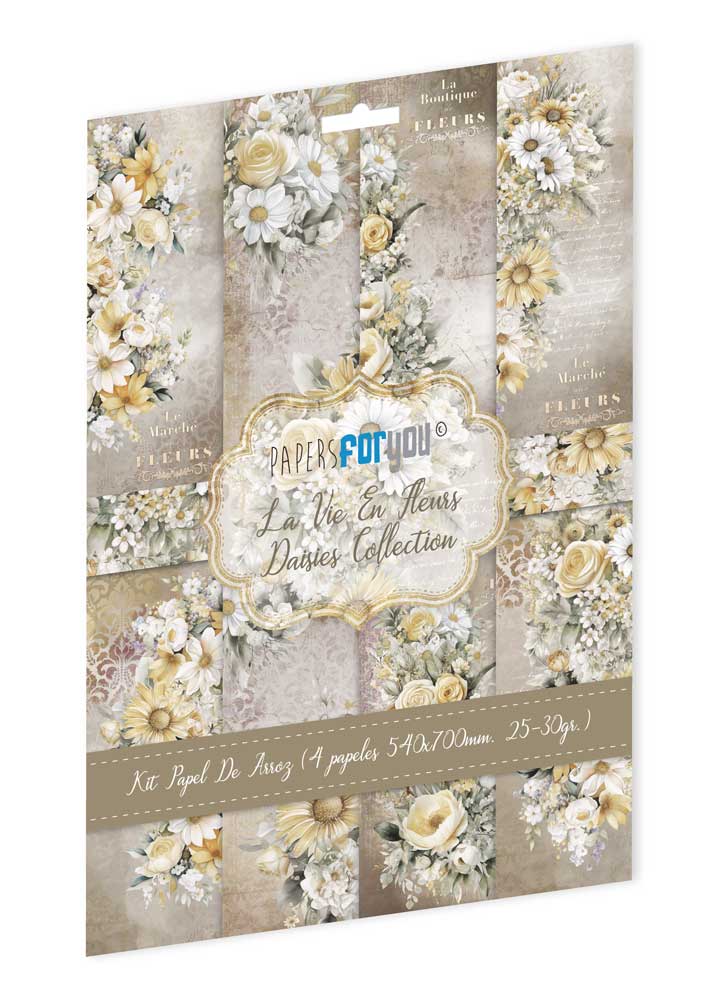 PFY-12785 – Colección de 4 Papeles Arroz 54×70 cm 25-30 gr. (La Vie En Fleurs Daisies))- pack 4 ud.