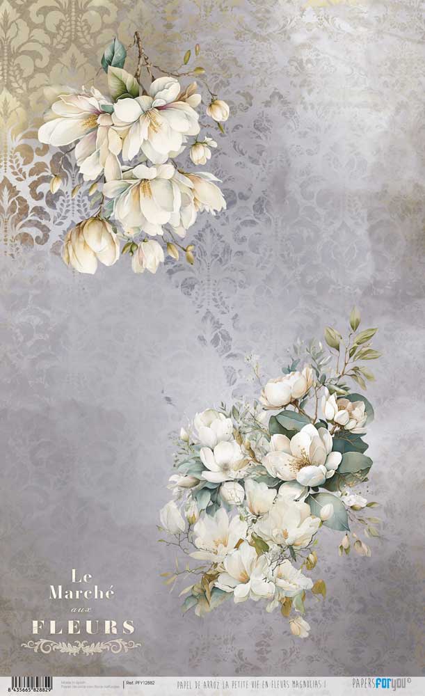 PFY-12882 – Papel Arroz 54×33 cm 25-30 gr. (La Petite Vie En Fleurs Magnolias I) – pack 6 ud.