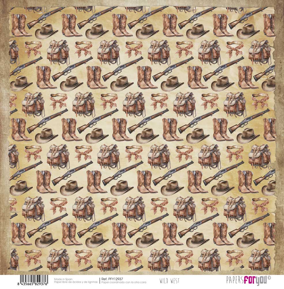 PFY-12937 – Papel Scrap doble cara 180gr 12″x12″ (Wild West)- pack 12 ud.
