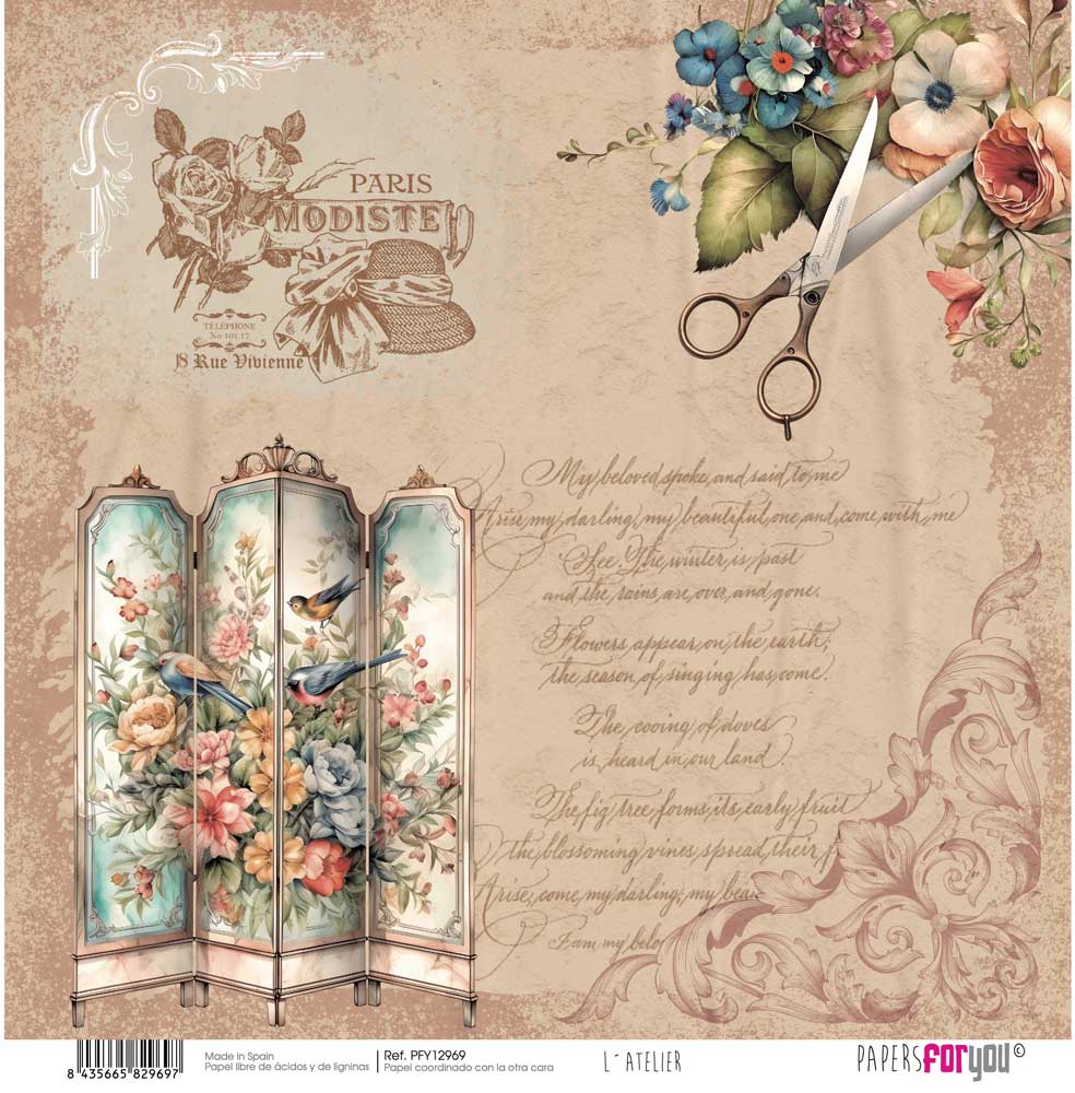 PFY-12969 – Papel Scrap doble cara 180gr 12″x12″ (L´Atelier)- pack 12 ud.