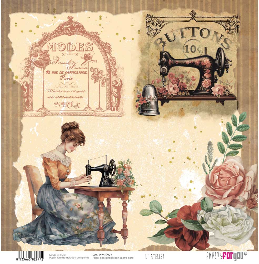 PFY-12977 – Papel Scrap doble cara 180gr 12″x12″ (L´Atelier)- pack 12 ud.