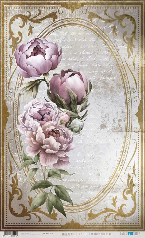 PFY-13001 – Papel Arroz 54×33 cm 25-30 gr. (La Petite Vie En Fleurs Peonies VI – pack 6 ud.