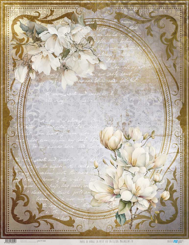 PFY-13032 – Papel Arroz 54×70 cm 25-30 gr. (La Petite Vie En Fleurs Magnolias IV) – pack 6 ud.