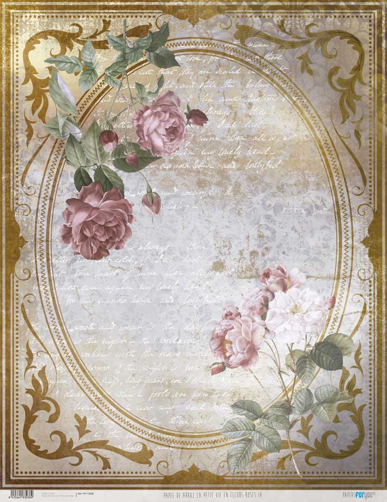 PFY-13038 – Papel Arroz 54×70 cm 25-30 gr. (La Petite Vie En Fleurs Roses IV) – pack 6 ud.
