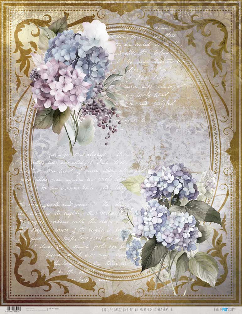 PFY-13052 – Papel Arroz 54×70 cm 25-30 gr. (La Petite Vie En Fleurs Hydrangeas IV) – pack 6 ud.