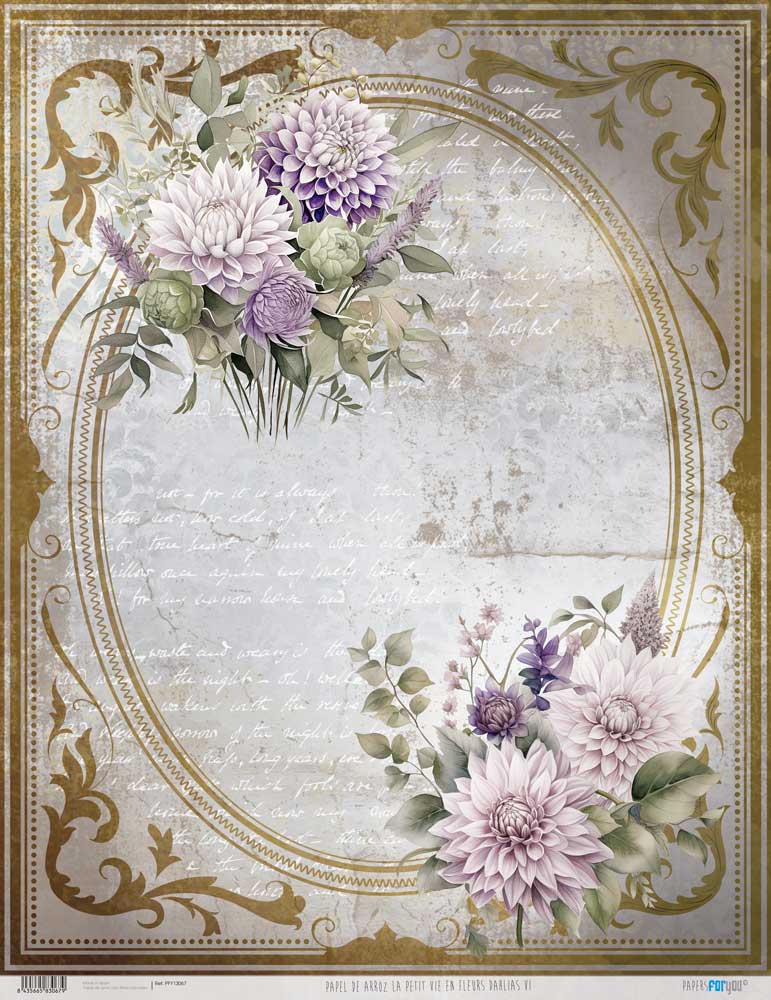 PFY-13067 – Papel Arroz 54×70 cm 25-30 gr. (La Petite Vie En Fleurs Dahlias VI) – pack 6 ud.