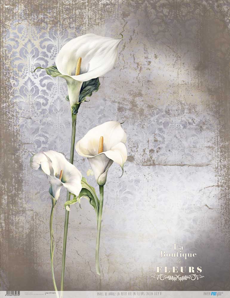 PFY-13073 – Papel Arroz 54×70 cm 25-30 gr. (La Petite Vie En Fleurs Calla Lily V) – pack 6 ud.