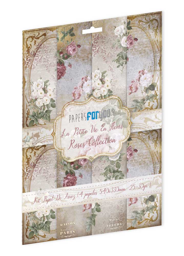 PFY-13076 – Colección de 4 Papeles Arroz 54×33 cm 25-30 gr. (Roses) – pack 4 ud.