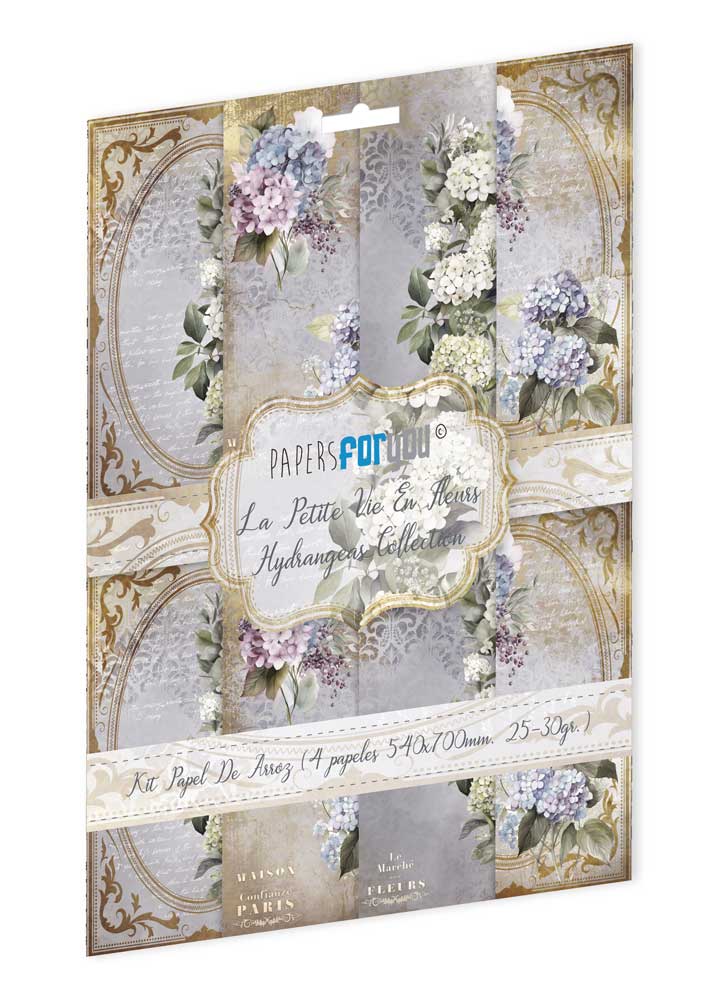 PFY-13086 – Colección de 4 Papeles Arroz 54×70 cm 25-30 gr. (Hydrangeas) – pack 4 ud.