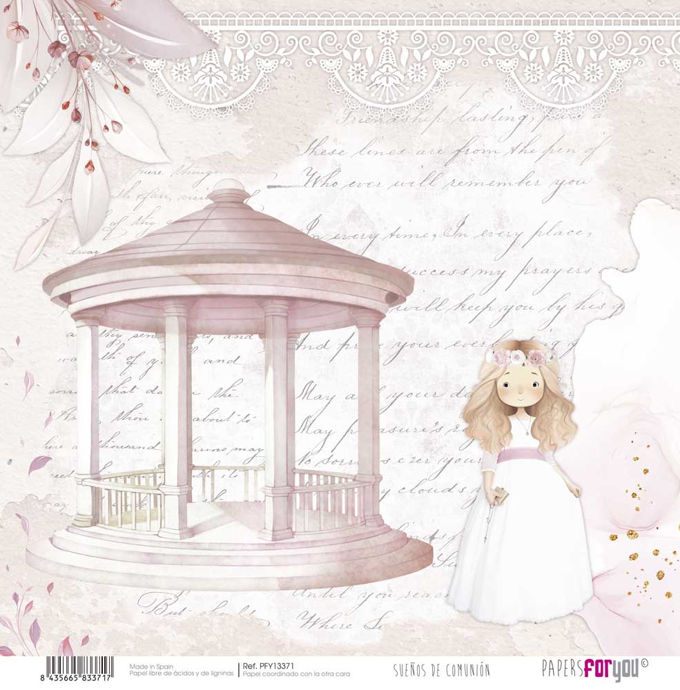 PFY-13371 – Papel Scrap doble cara 180gr 12″x12″ (Sueños De Comunión Niña Rubia)- pack 12 ud.