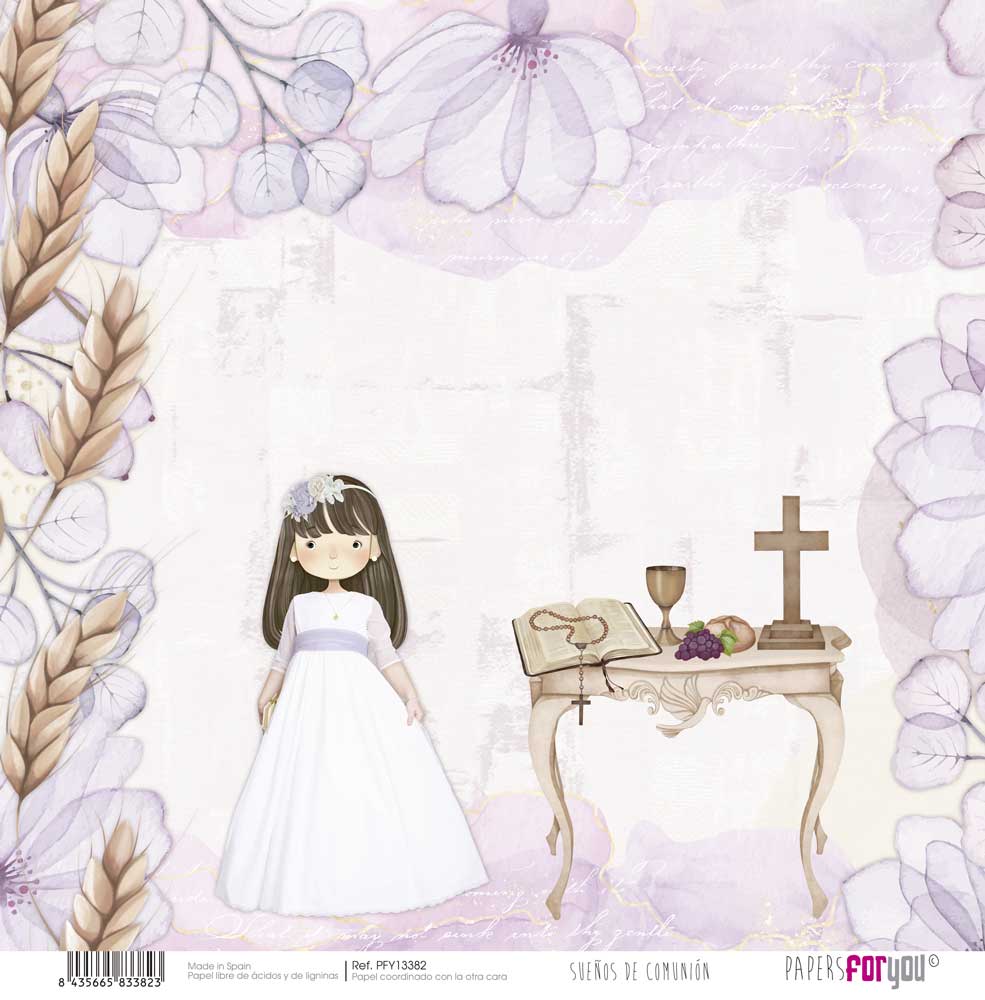 PFY-13382 – Papel Scrap doble cara 180gr 12″x12″ (Sueños De Comunión Niña Morena)- pack 12 ud.