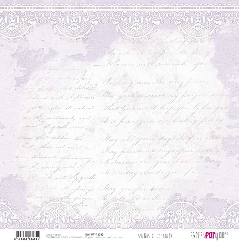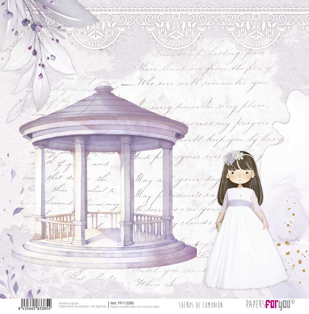 PFY-13385 – Papel Scrap doble cara 180gr 12″x12″ (Sueños De Comunión Niña Morena)- pack 12 ud.