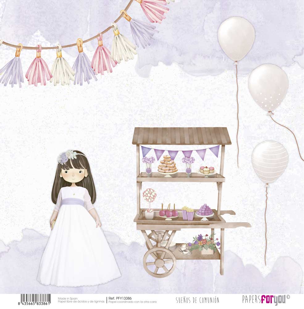PFY-13386 – Papel Scrap doble cara 180gr 12″x12″ (Sueños De Comunión Niña Morena)- pack 12 ud.