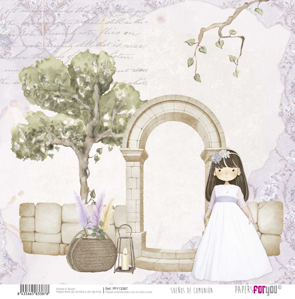 PFY-13387 – Papel Scrap doble cara 180gr 12″x12″ (Sueños De Comunión Niña Morena)- pack 12 ud.
