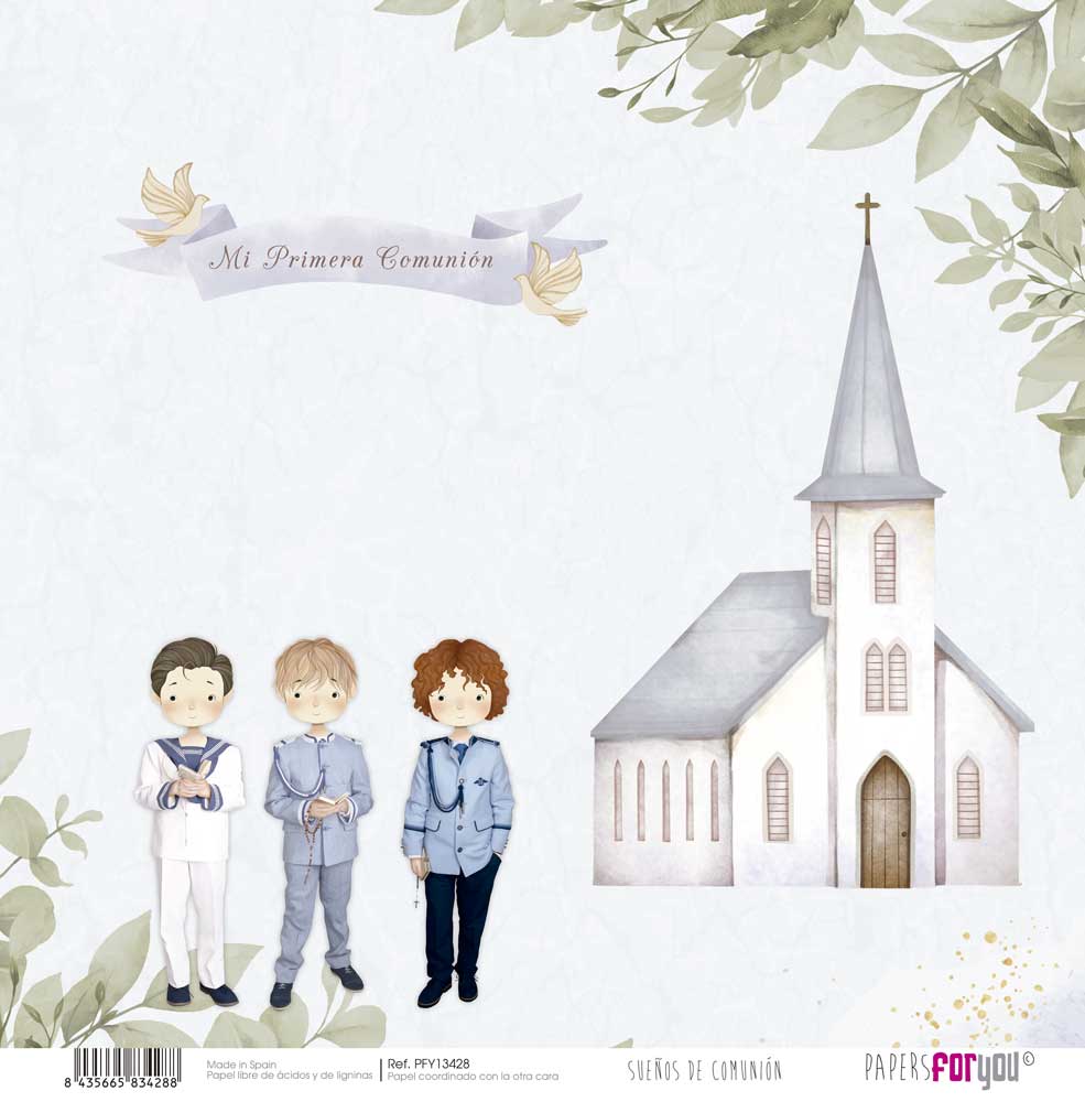 PFY-13428 – Papel Scrap doble cara 180gr 12″x12″ (Sueños De Comunión Niño Moreno)- pack 12 ud.