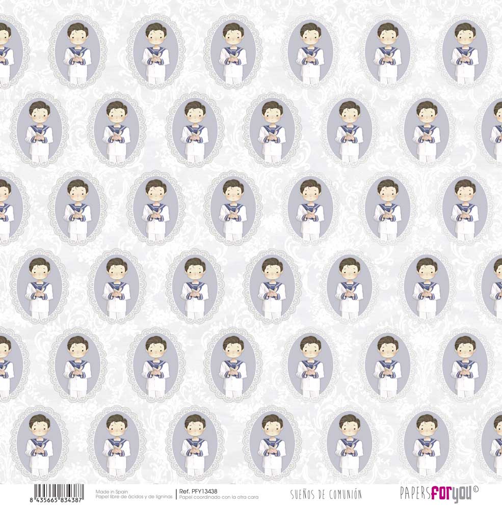 PFY-13438 – Papel Scrap doble cara 180gr 12″x12″ (Sueños De Comunión Niño Moreno)- pack 12 ud.