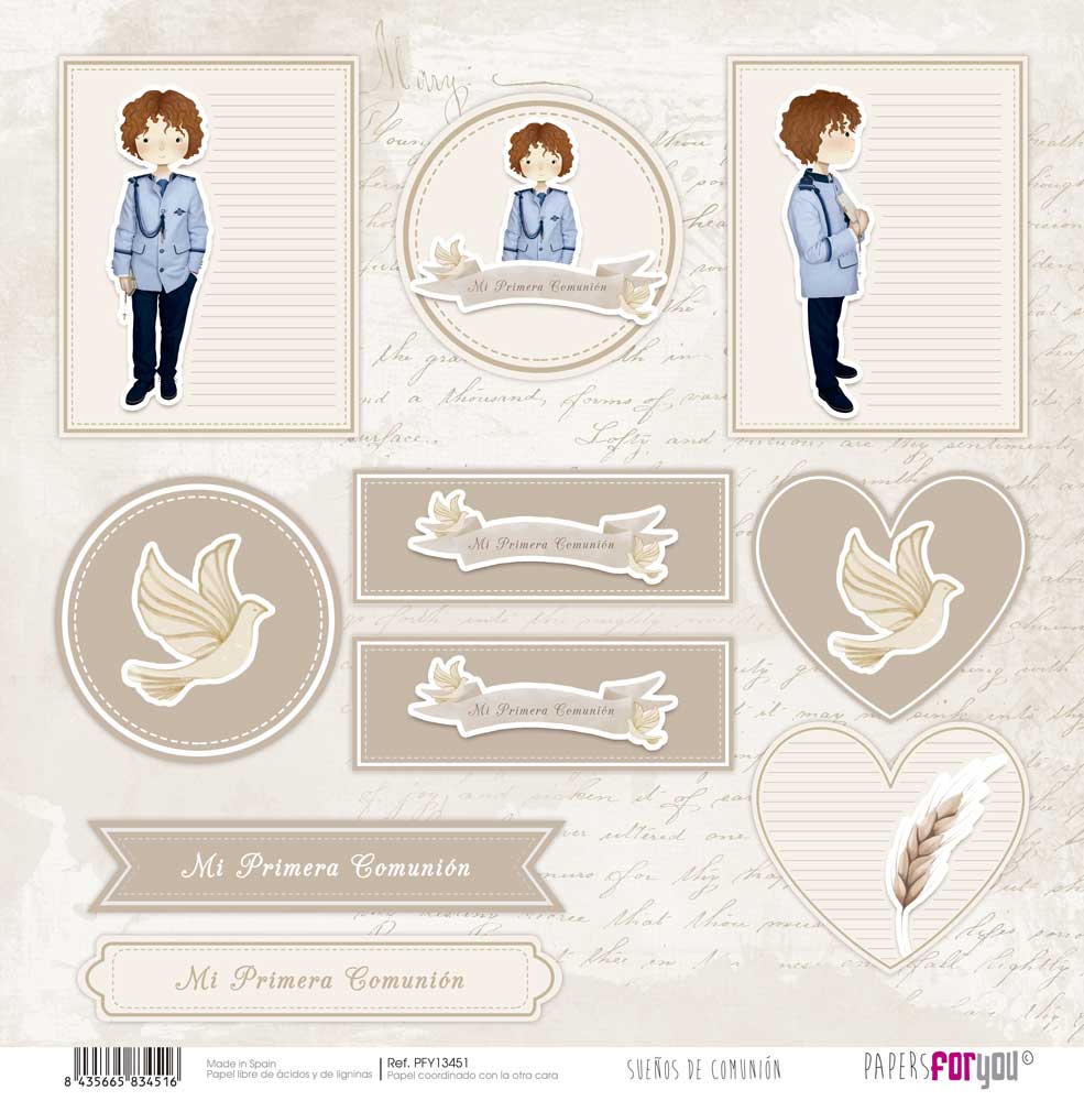PFY-13451 – Papel Scrap doble cara 180gr 12″x12″ (Sueños De Comunión Niño Pelirrojo)- pack 12 ud.
