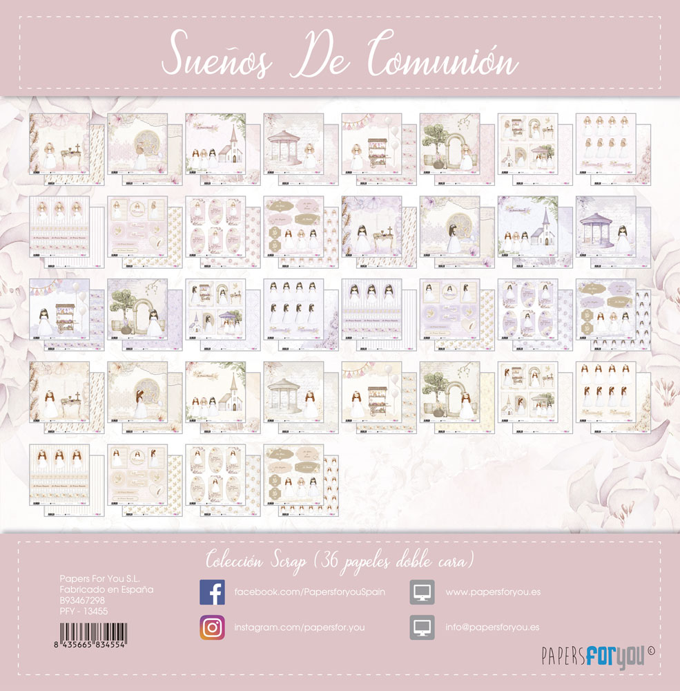 PFY-13455 – Colección 36 Papeles Scrap doble cara 180gr 8″x 8″ (Sueños De Comunión Niñas)- pack 3 ud.