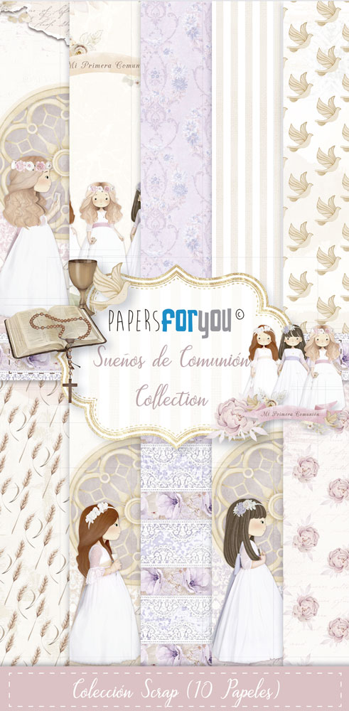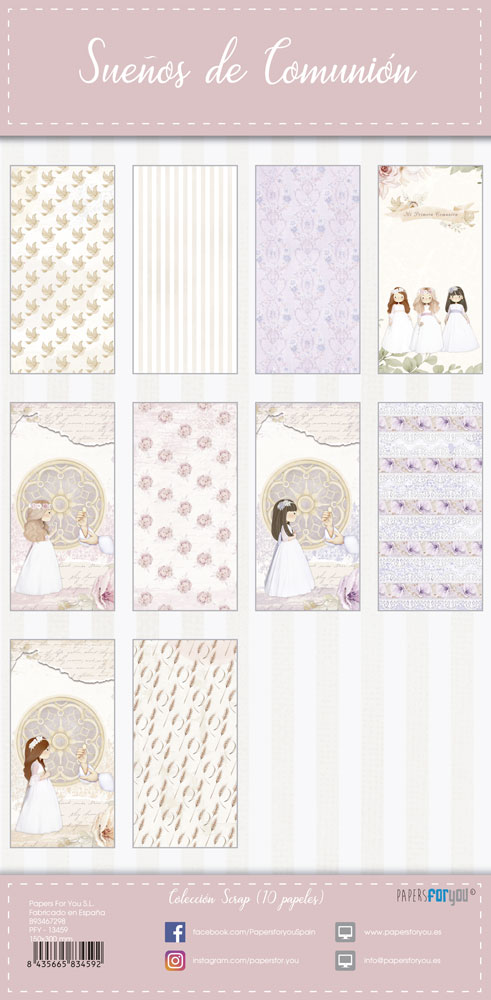 PFY-13459 – Colección 14 Papeles Scrap Una cara 180gr 6″x12″ (Sueños De Comunión Niñas)- pack 4 ud.