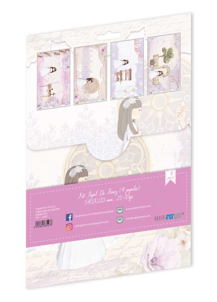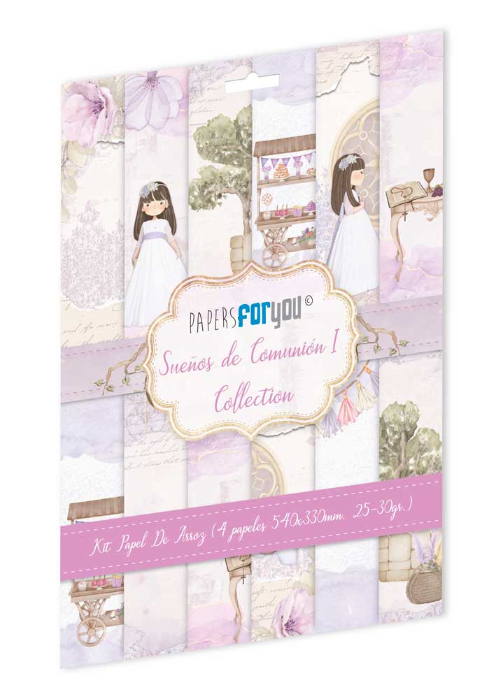 PFY-13527 – Colección de 4 Papeles Arroz 54×33 cm 25-30 gr. (Sueños De Comunión Niña Morena) – pack 4 ud.