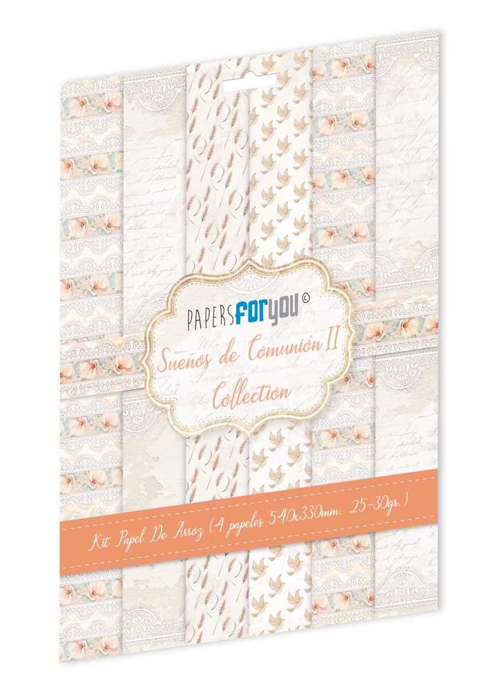 PFY-13532 – Colección de 4 Papeles Arroz 54×33 cm 25-30 gr. (Sueños De Comunión Fondos Niña Pelirroja) – pack 4 ud.