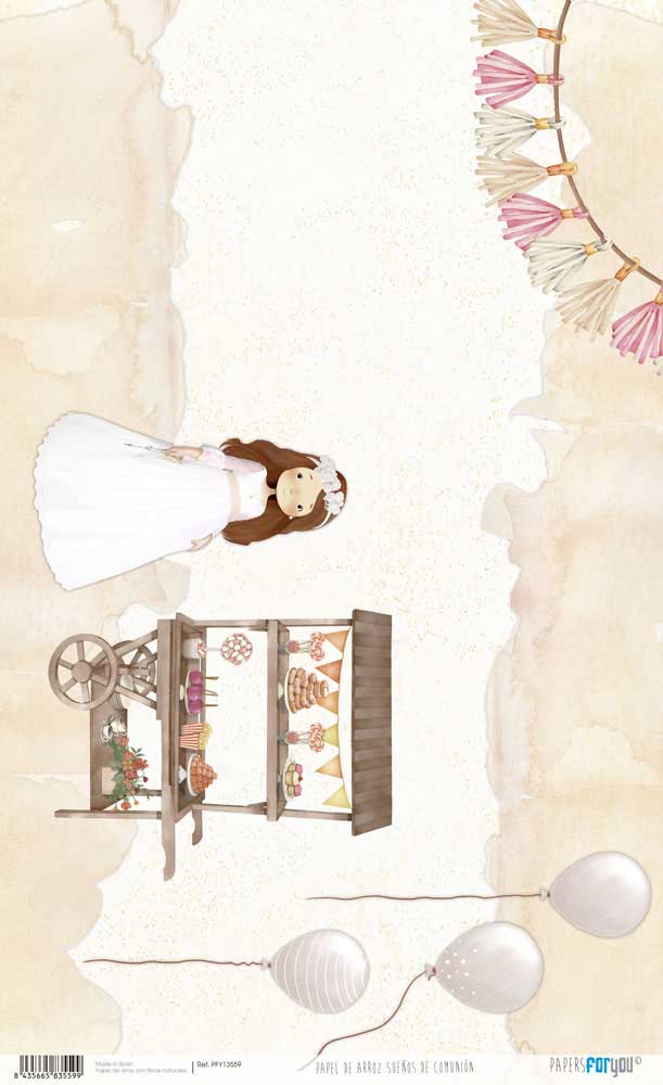 PFY-13559 – Papel Arroz 54×33 cm 25-30 gr. (Sueños De Comunión Niña Pelirroja) – pack 6 ud.
