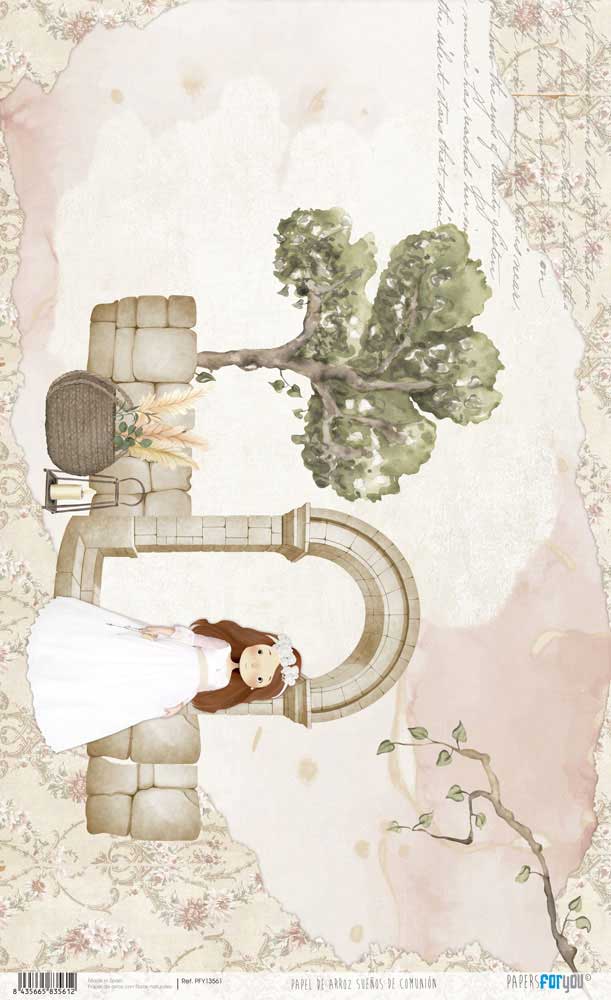 PFY-13561 – Papel Arroz 54×33 cm 25-30 gr. (Sueños De Comunión Niña Pelirroja) – pack 6 ud.