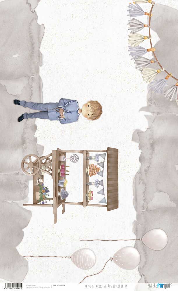 PFY-13568 – Papel Arroz 54×33 cm 25-30 gr. (Sueños De Comunión Niño Rubio) – pack 6 ud.