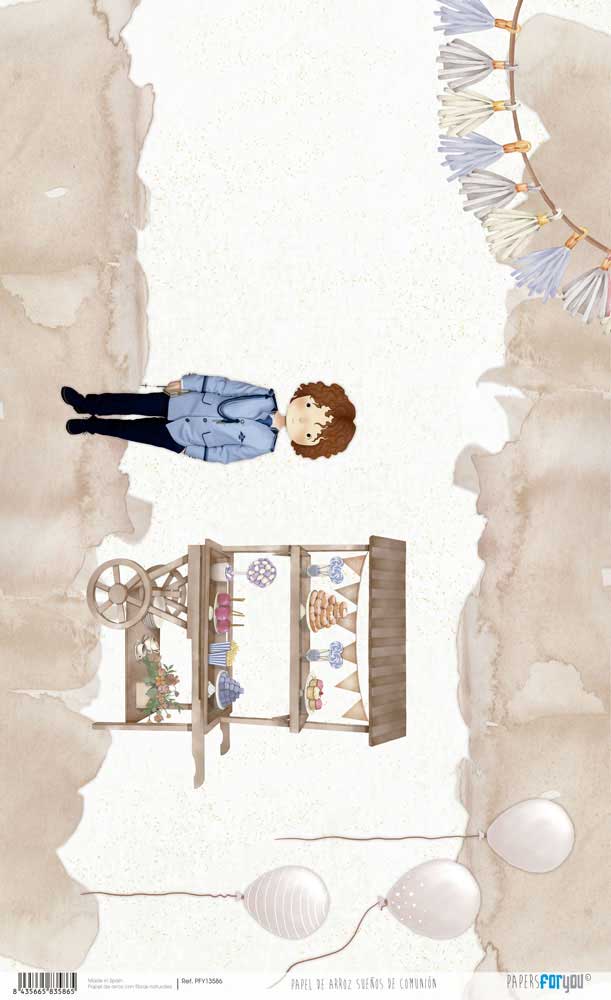 PFY-13586 – Papel Arroz 54×33 cm 25-30 gr. (Sueños De Comunión Niño Pelirrojo) – pack 6 ud.