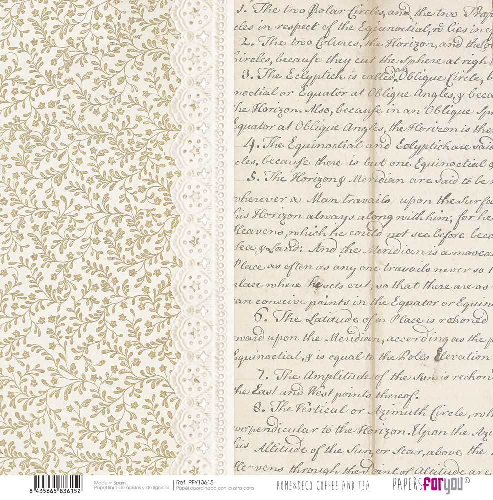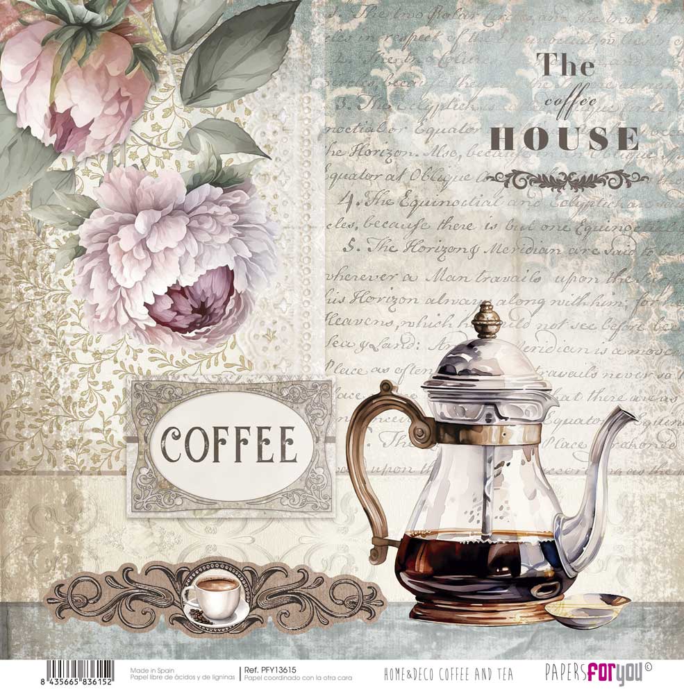 PFY-13615 – Papel Scrap doble cara 180gr 12″x12″ (Home&Deco Coffee and Tea)- pack 12 ud.