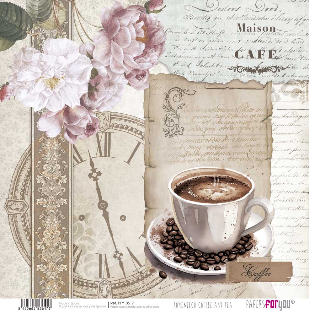 PFY-13617 – Papel Scrap doble cara 180gr 12″x12″ (Home&Deco Coffee and Tea)- pack 12 ud.