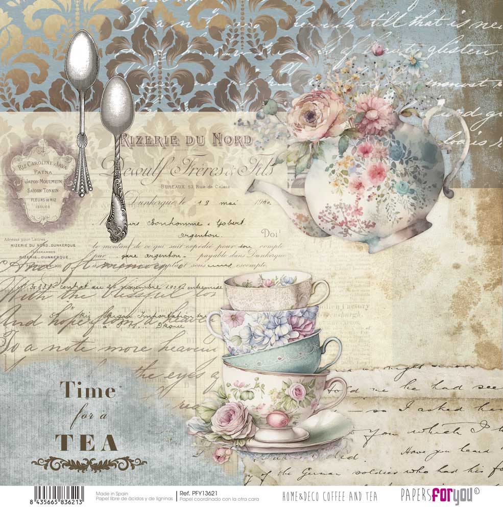PFY-13621 – Papel Scrap doble cara 180gr 12″x12″ (Home&Deco Coffee and Tea)- pack 12 ud.