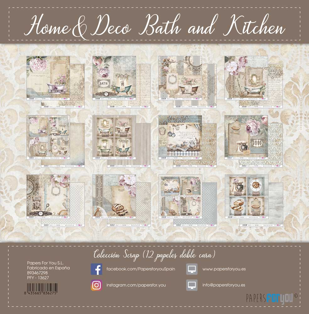 PFY-13627 – Colección 12 Papeles Scrap doble cara 180gr 12»x12» (Home&Deco Bath and Kitchen)- pack 3 ud.